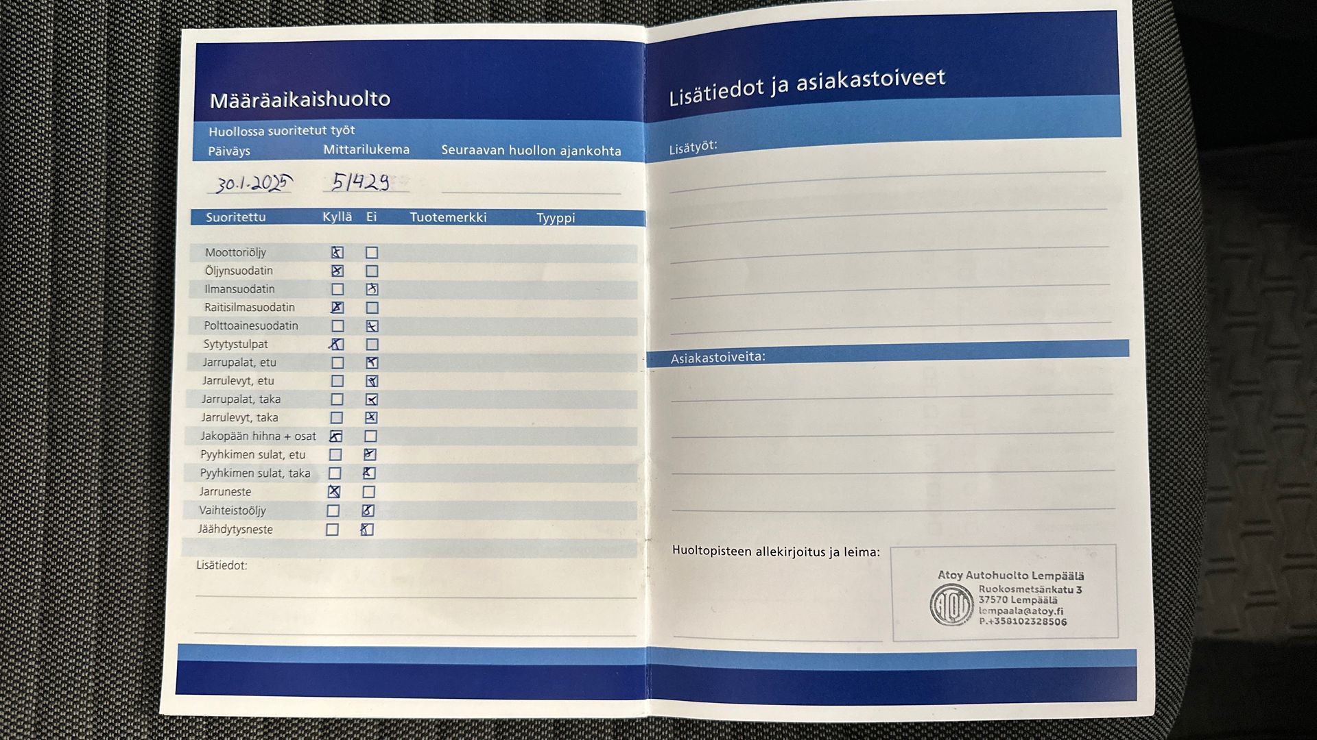 - Huoltokirja ( jakohihna vaihdettu 51 tkm )