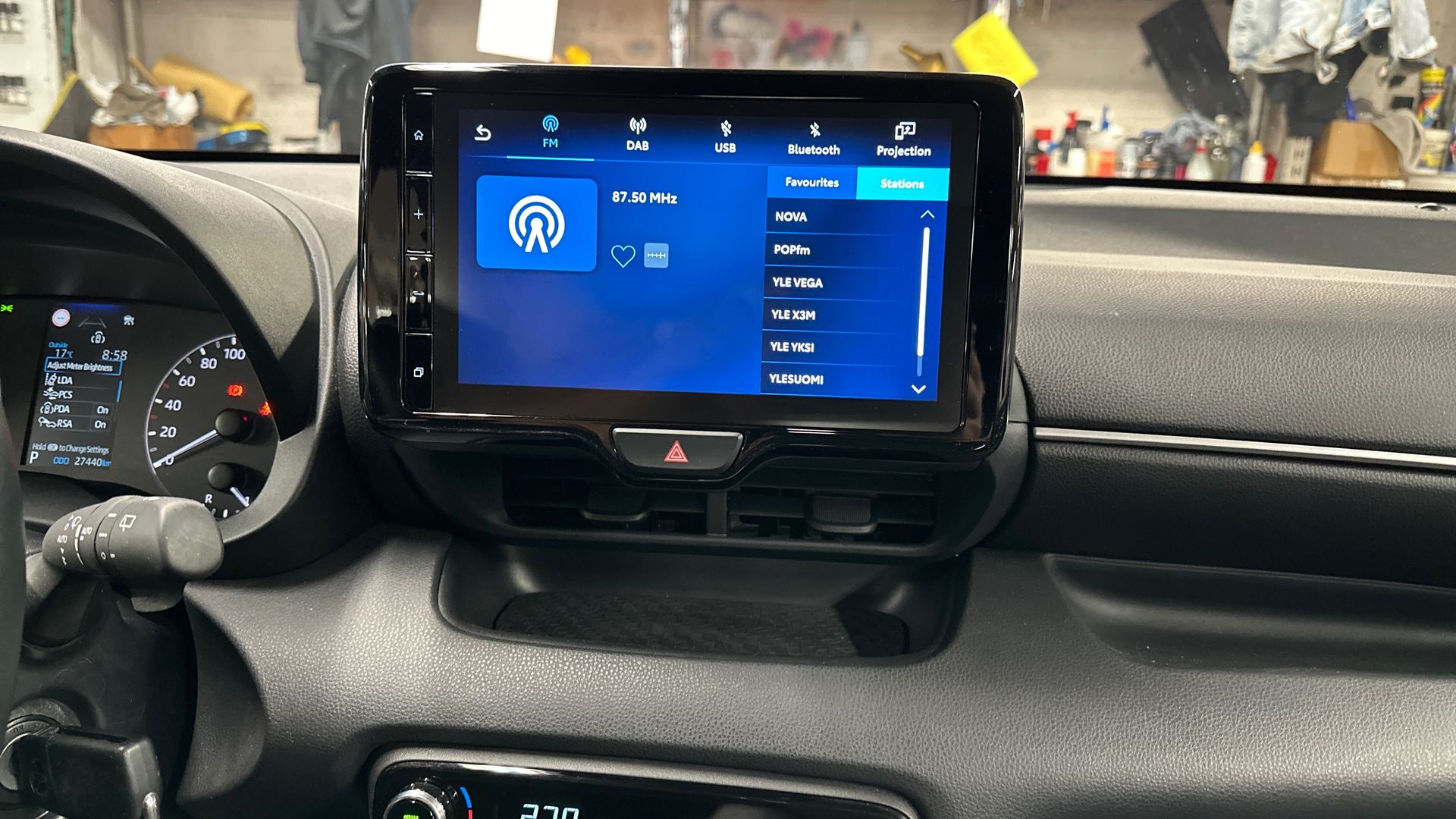 - Peruutuskameran kuva mediakeskuksen näytöllä